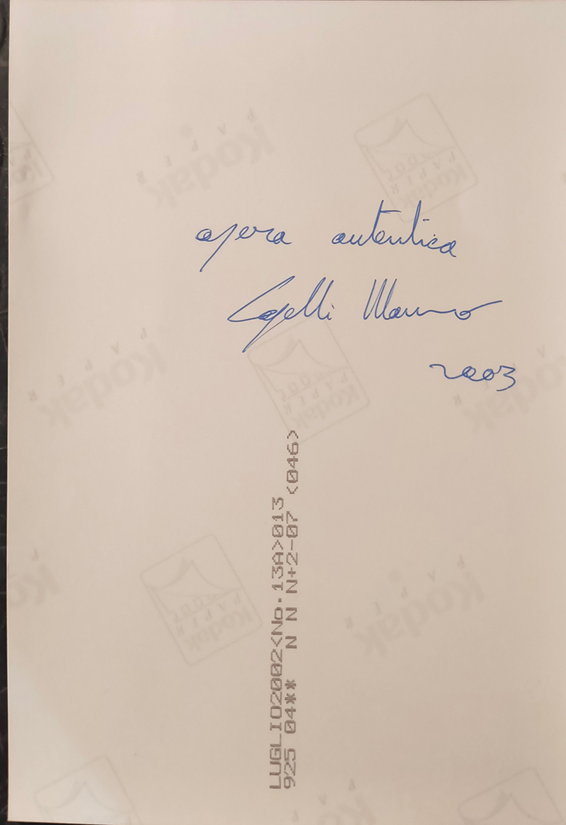 Certificazione: Firmato fronte opera - Autentica su foto dell'artista