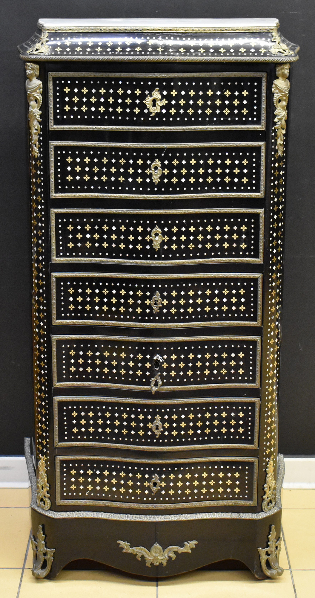 Secretaire in legno ebanizzato intarsiato in ottone e madreperla epoca Napoleone III sec.XIX