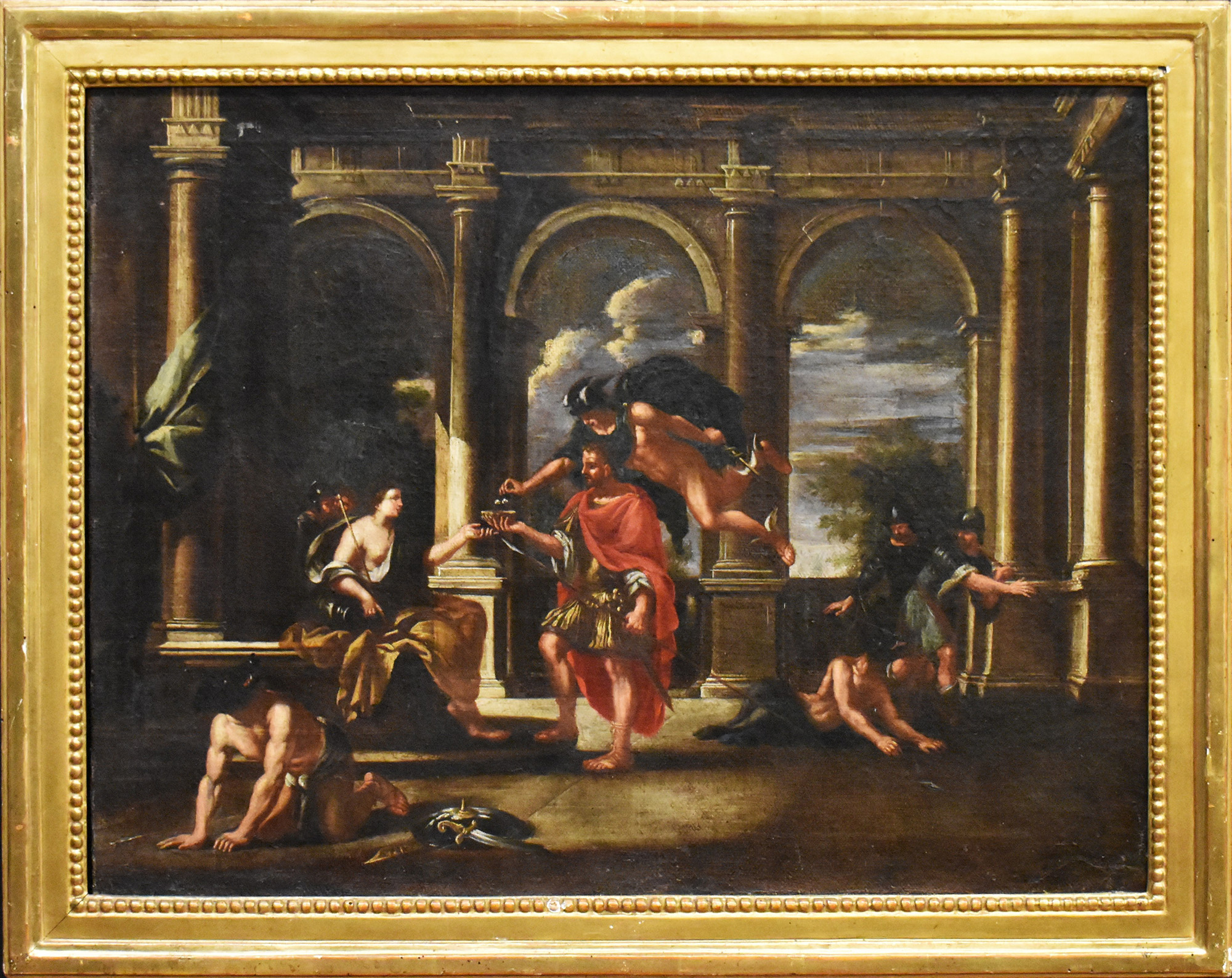 Precedente Lotto 0079 Successivo Casa d'Aste Martini - C.so Cavallotti 76, 18038 Sanremo OPERE E OGGETTI D'ARTE PROVENIENTI DA VARIE COLLEZIONI Sessione unica venerdì 14 giugno 2024 ore 15:00 (UTC +01:00) DIPINTO 'Circe e Ulisse' olio su tela scuola romana sec.XVIIcm. 52x67