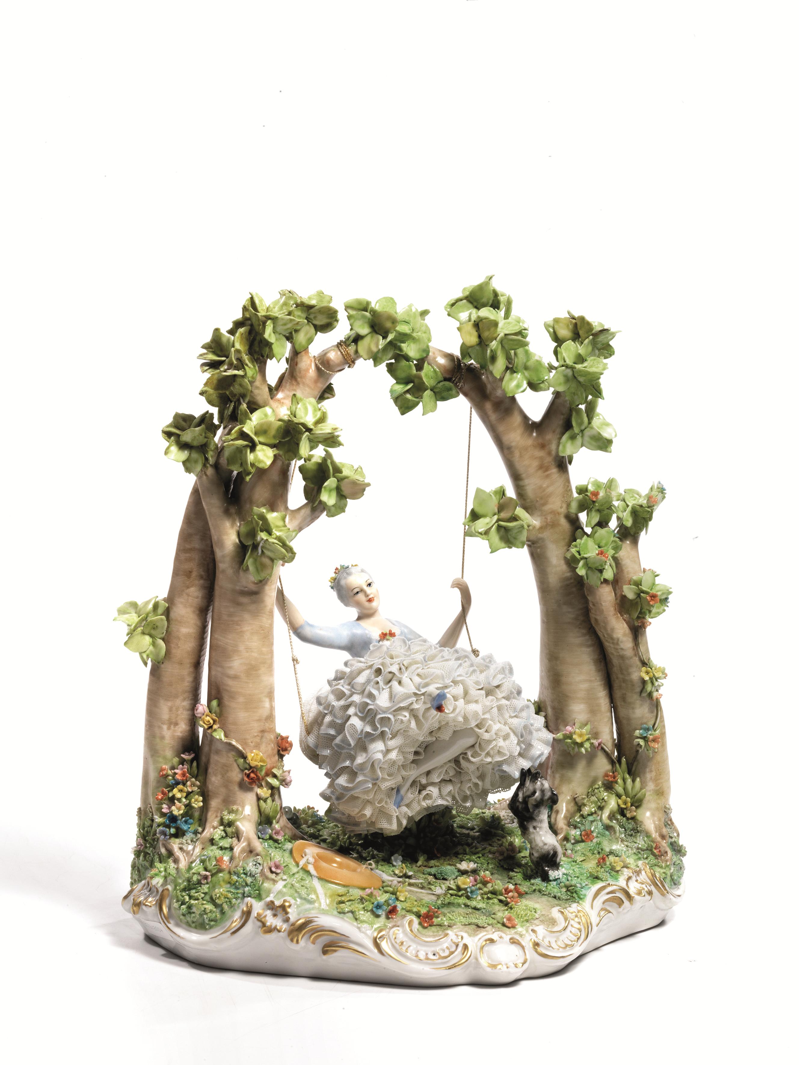 Lotto 32 | FANCIULLE SULL'ALTALENAManifattura Fabris, Bassano-Milano Gruppo in ceramica...