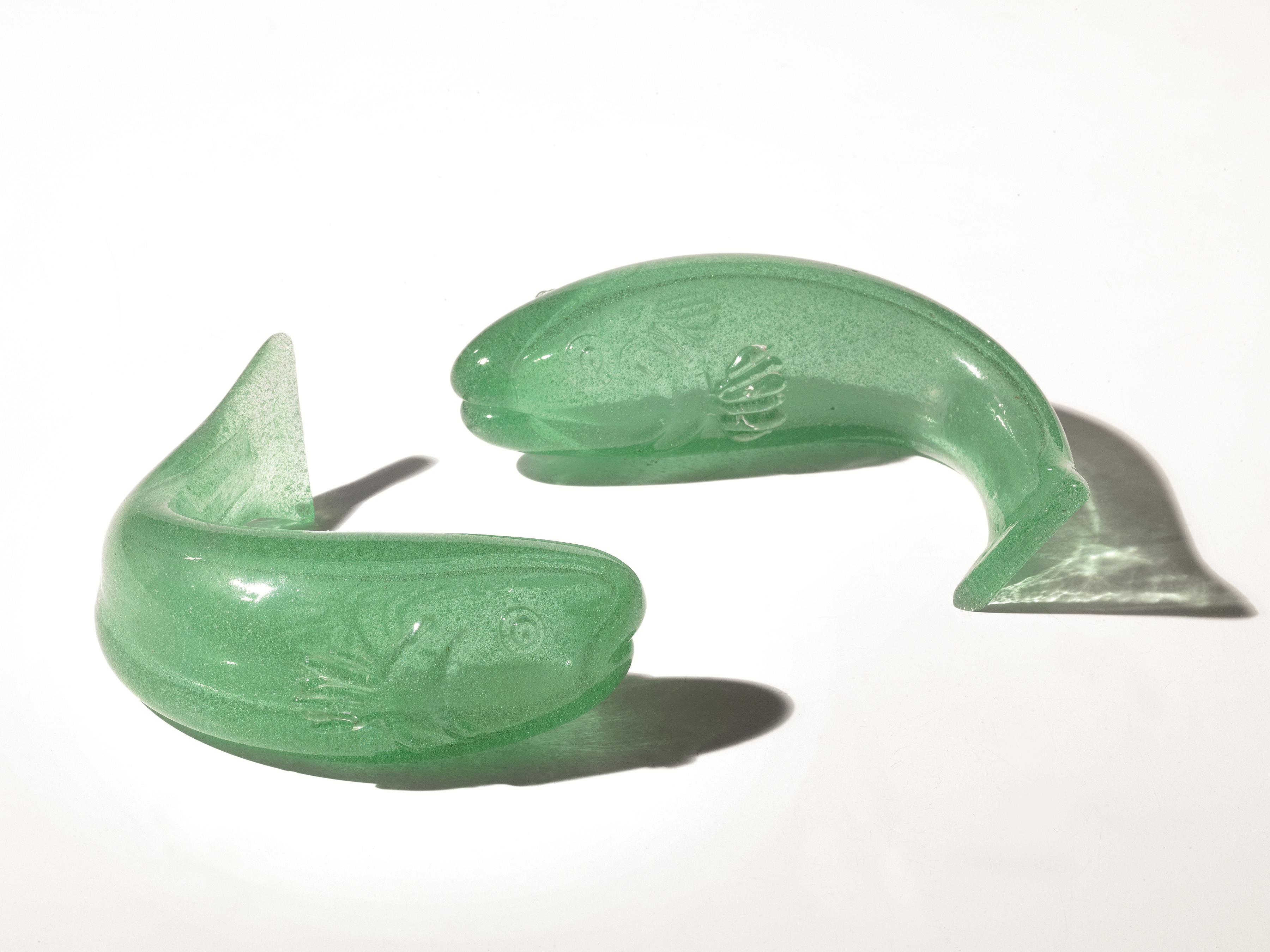 DUE PESCIProduzione Venini, Murano1937vetro corroso sommerso verdealt. cm 7,...