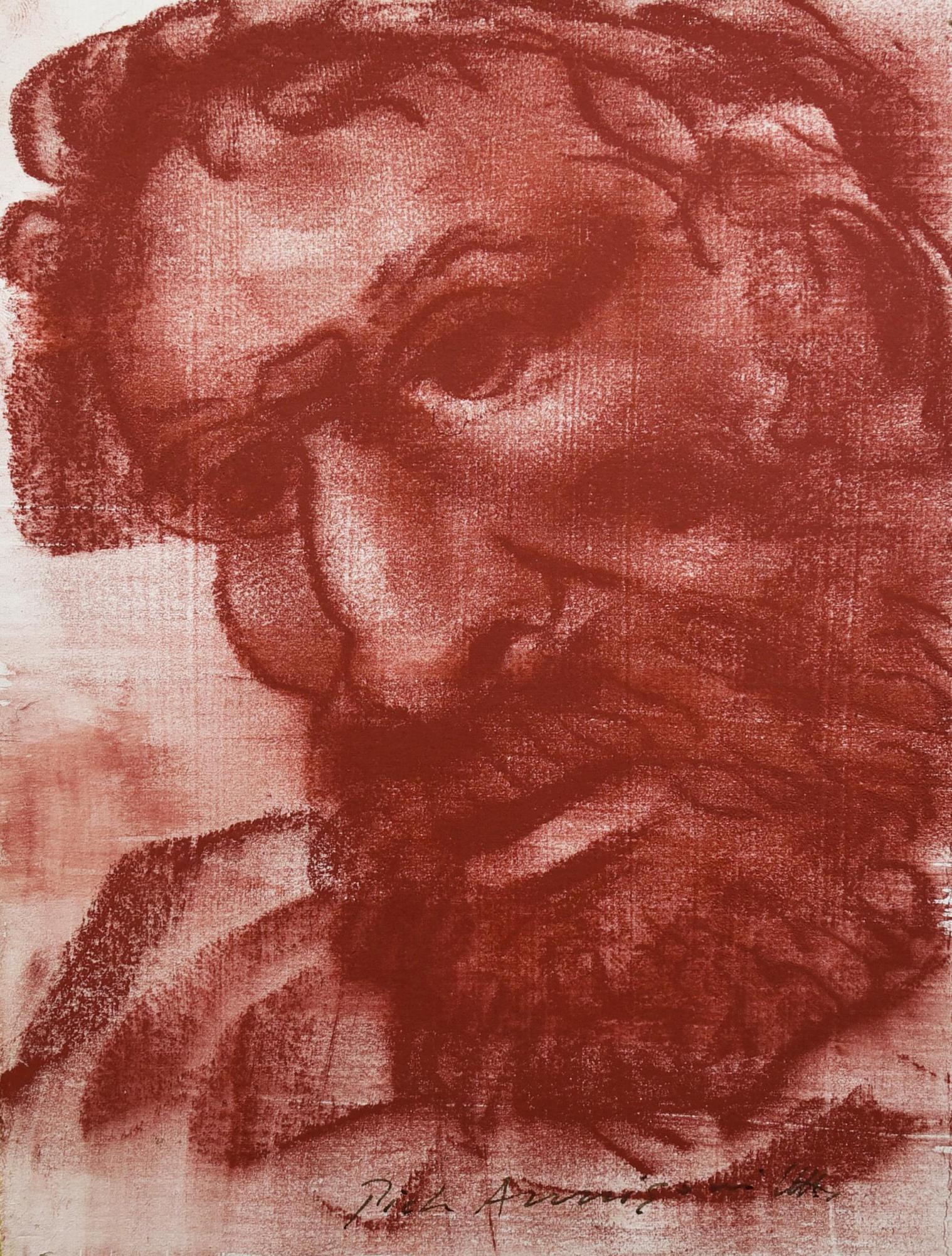 Pietro Annigoni (1910 - 1988) VOLTO sanguigna su cartoncino, cm 20x15 firma...