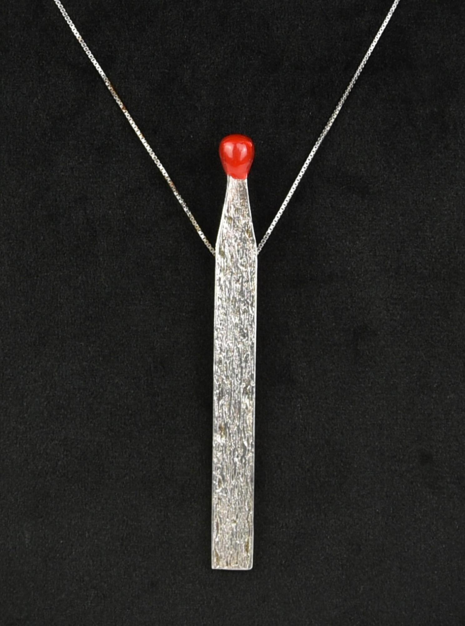 Raymond Hains (1926 - 2005) PENDENTE "FIAMMIFERO", 2005 argento 925 e smalto...
