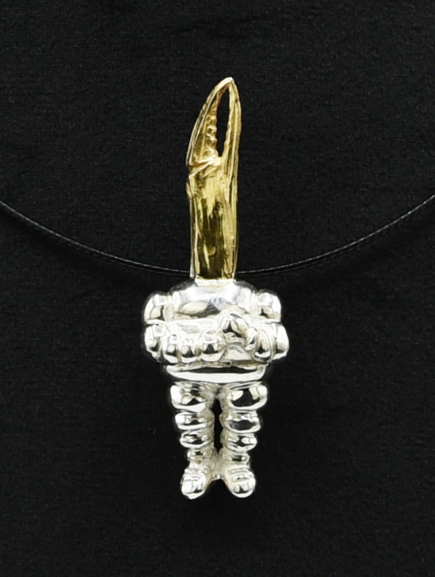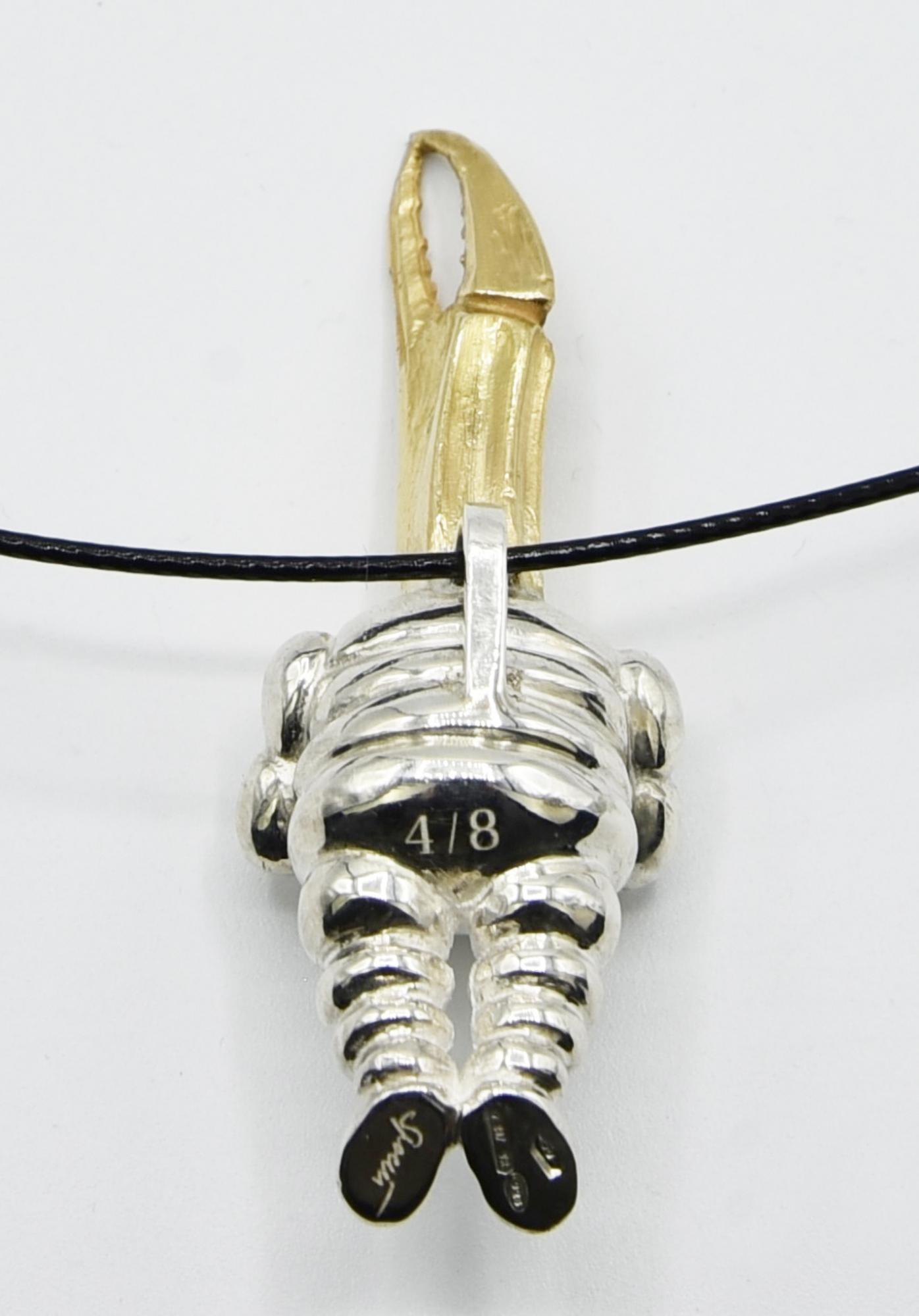 Daniel Spoerri (1930) SPILLA/PENDENTE "MINIBIBENDUM CON CHELA", 1998 argento...