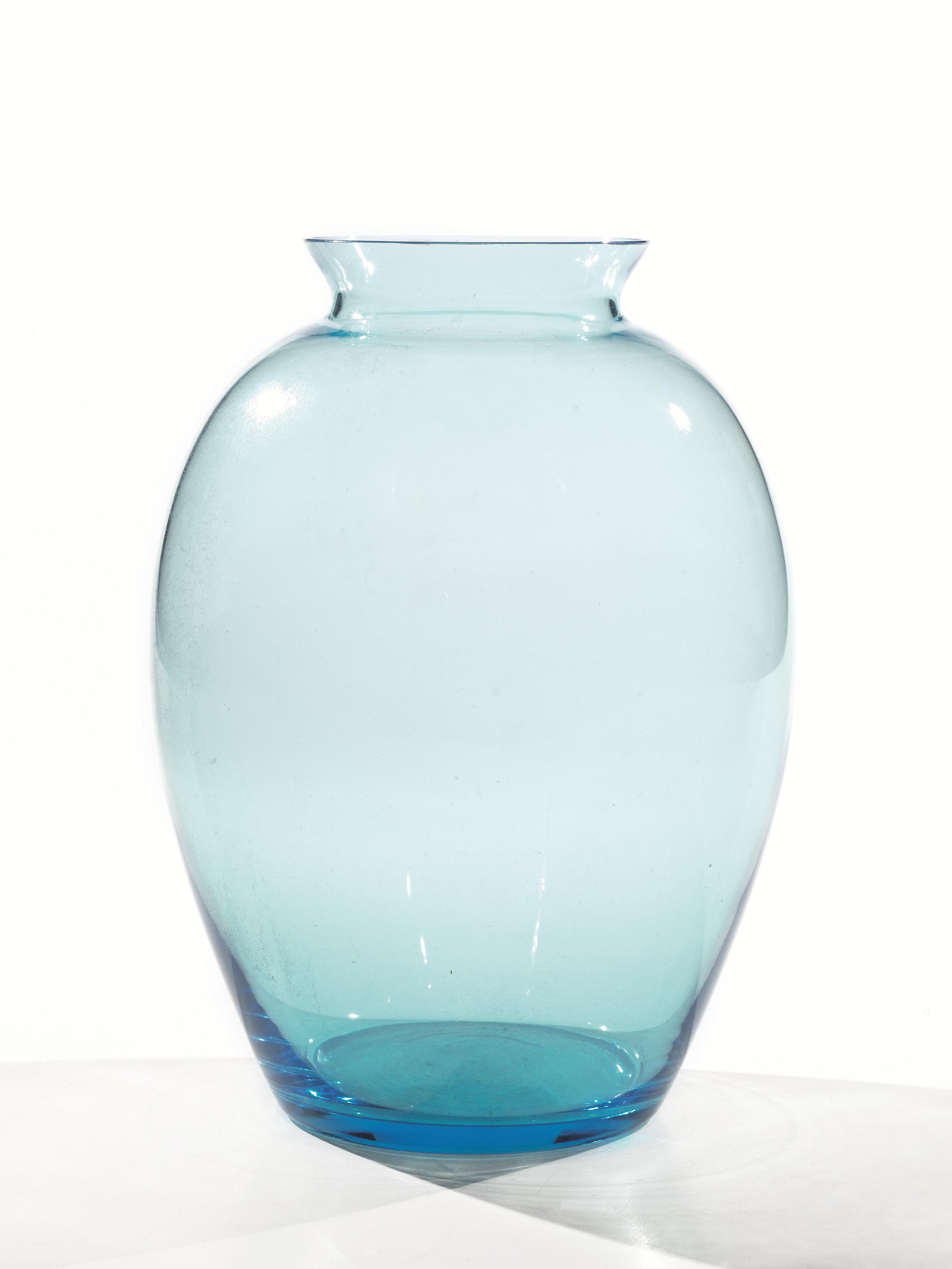 Carlo Moretti Murano VASO vetro azzurro, alt. cm 25. Firma alla base