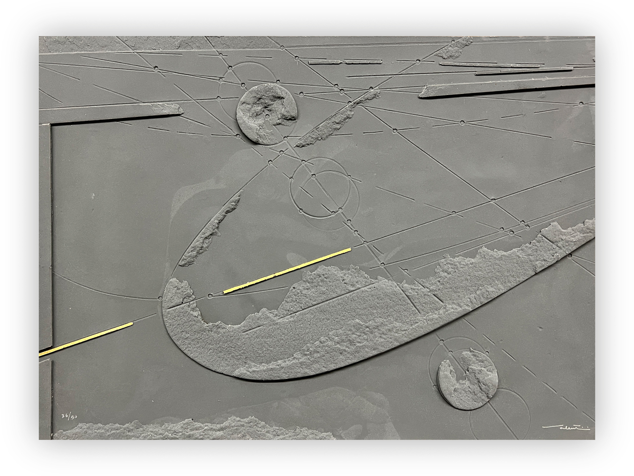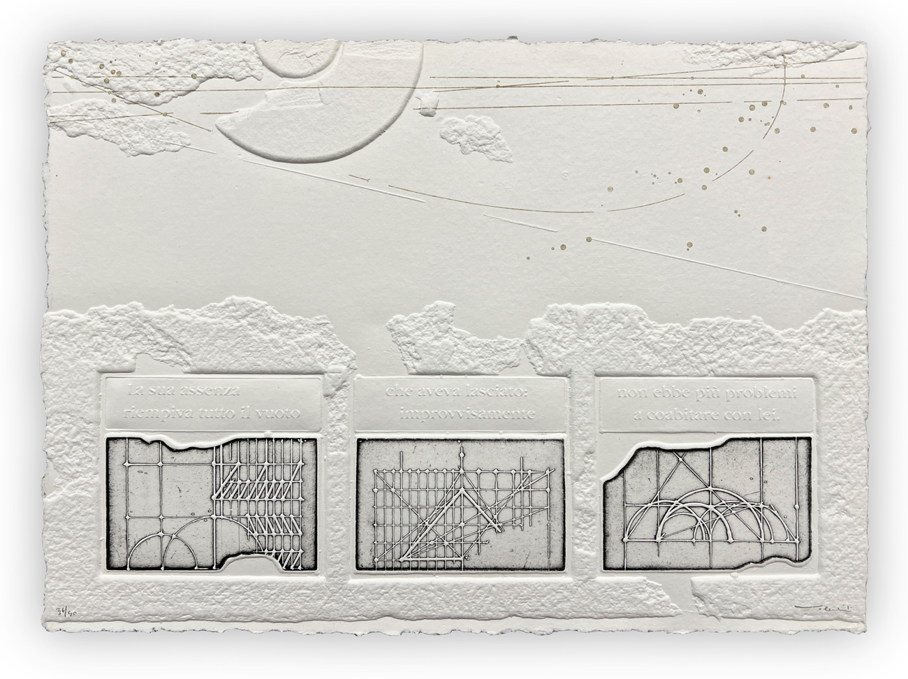 L'edizione è arricchita da un'ulteriore opera multipla in laminato plastico recante firma e numerazione (Esemplare 36/50) al fronte