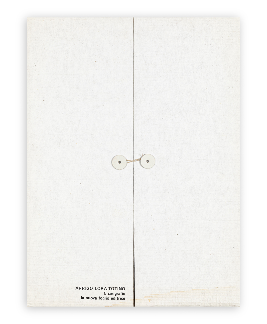 Cartella contenente testo di presentazione di Umbro Apollonio e 5 serigrafie di Arrigo Lora-Torino, ciascuna recante firma e numerazione (Esemplari XX/XXV) a matita al fronte