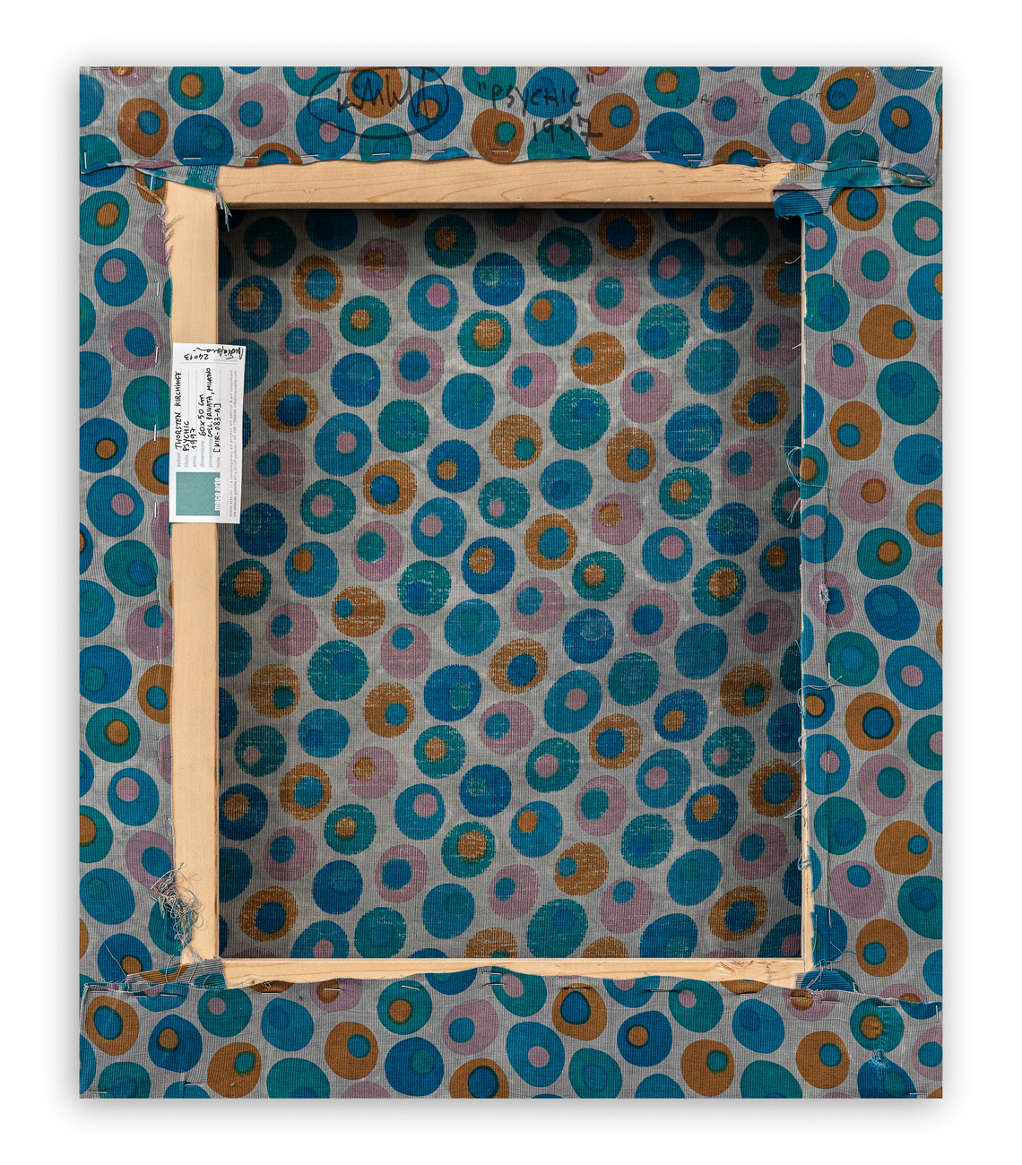 Etichetta della Galleria Maco Arte (PD) con caratteristiche tecniche dell'opera al retro