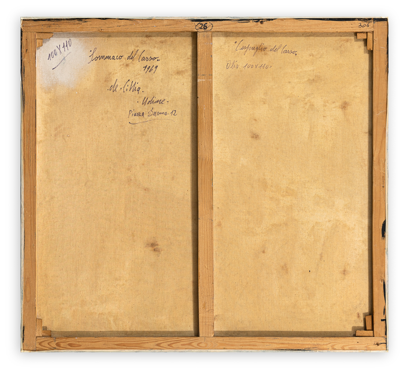 Firma, titolo, tecnica, misure, datazione e località (Udine) al retro