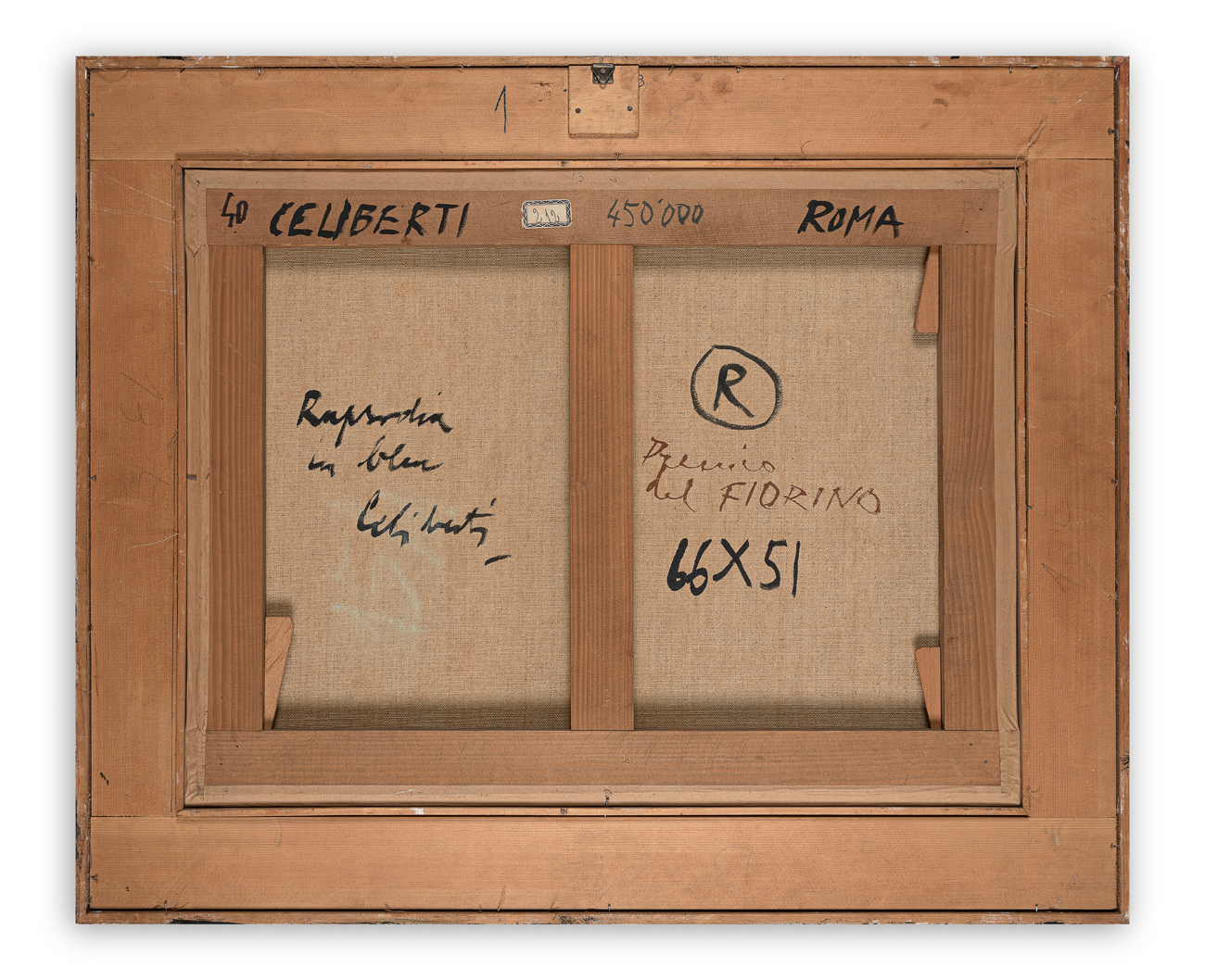 Firma, titolo, misure, località (Roma) e iscrizione 'Premio del Fiorino' al retro