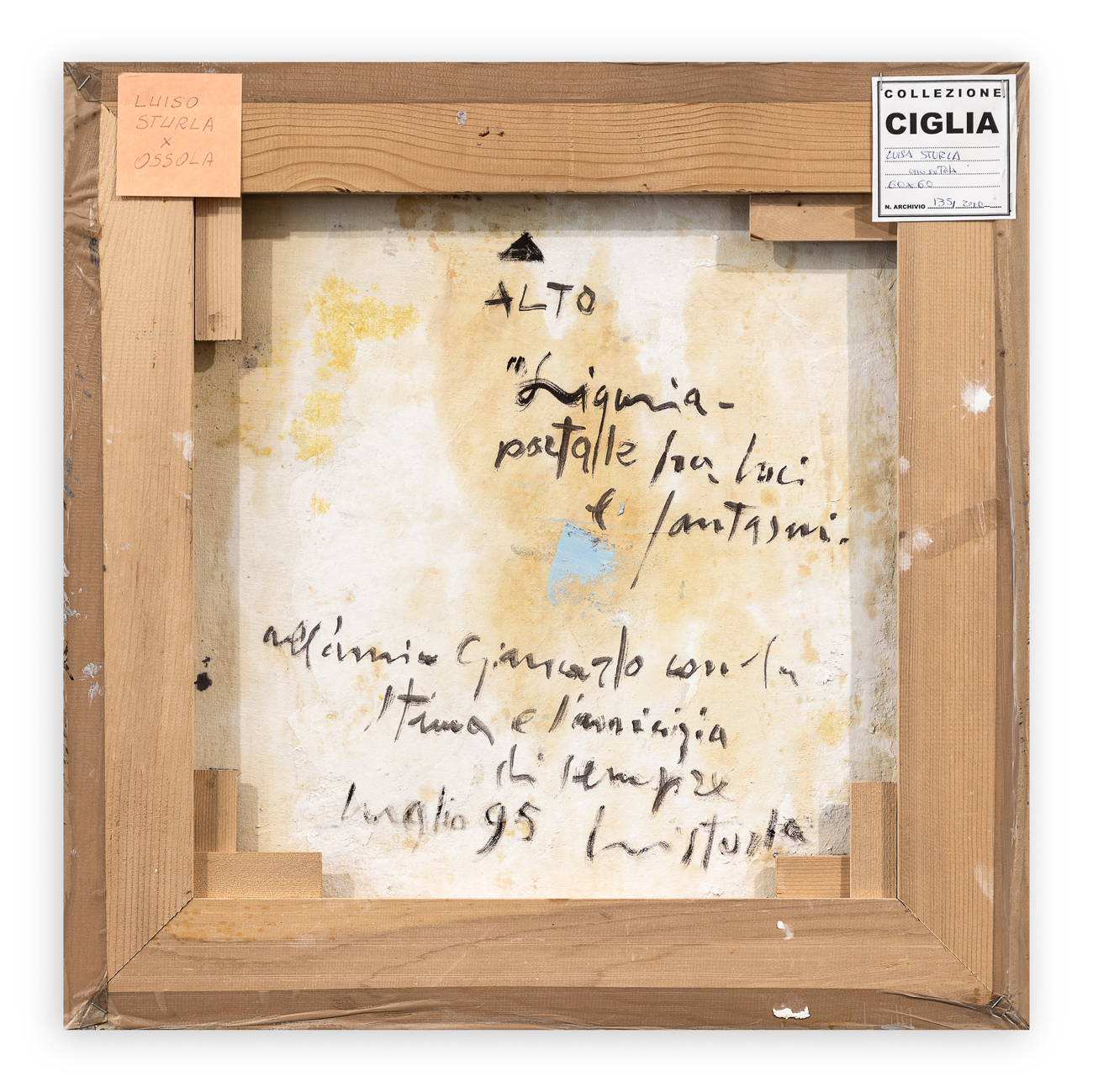 Firma, titolo, datazione e dedica a Giancarlo Ossola al retro