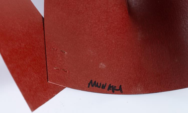 BRUNO MUNARI (Milano 1907 - 1998) "Il quadro non è più lui", 1995. Scultura in cartoncino Murillo Fabriano 350 gr. dipinta con bomboletta. Cm 26x21x30. Opera firmata Munari. Esposizione: "Munari trasparente" Galleria Colussa Udine 1999; "Fare dal nulla" di Bruno Munari Trieste Mini Mu parco dei bambini 2008.