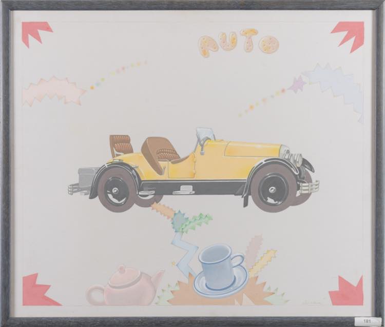 LUCA ALINARI (Firenze 1943 - 2019) "Auto", 1984-85. Acrilico su tela. Cm 60x70. Opera firmata in basso a destra Alinari. Opera accompagnata da autentica dell'artista su foto.