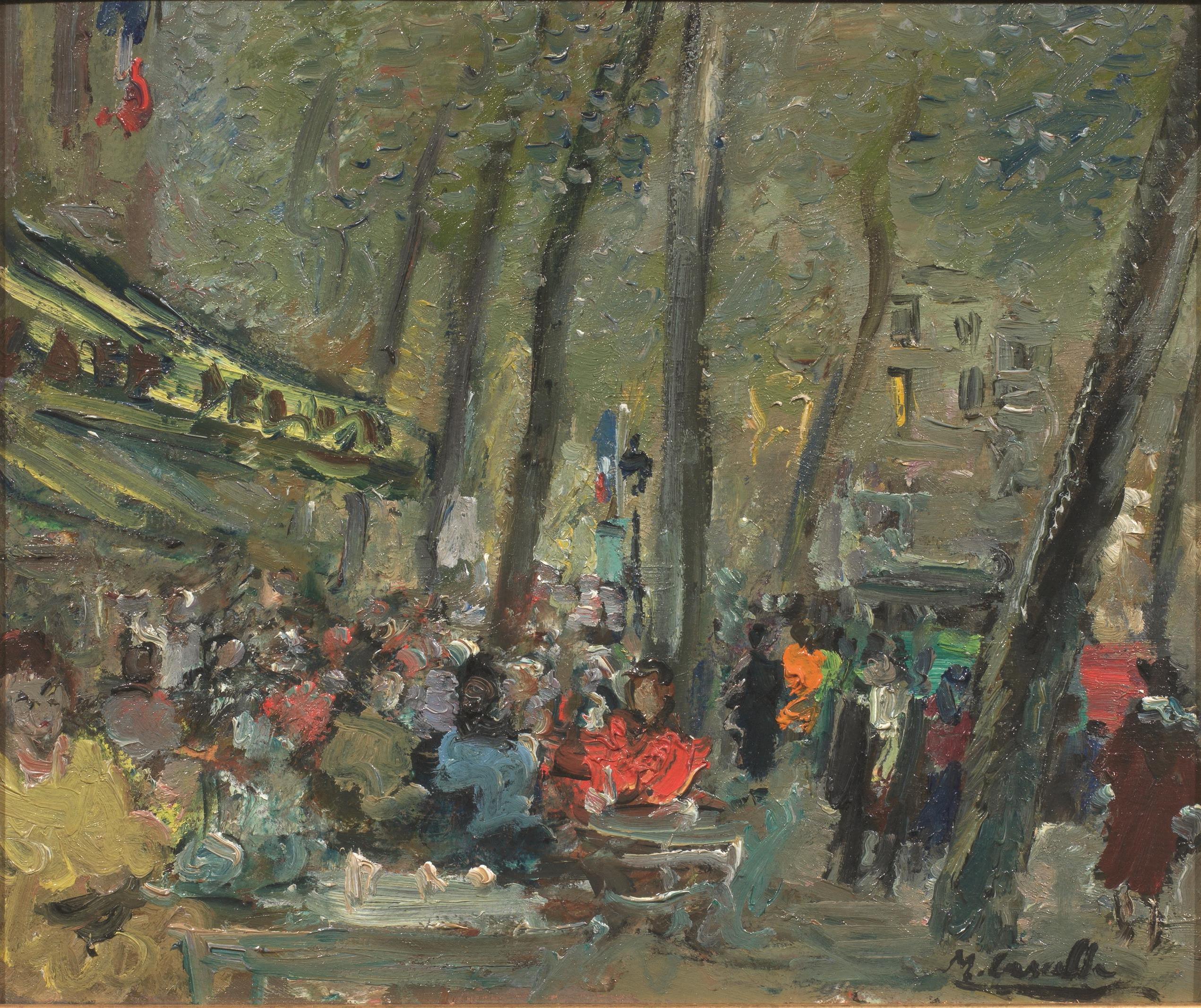 Michele Cascella (Ortona 1892 - Milano 1989) STRADA PARIGINA olio su cartone,...
