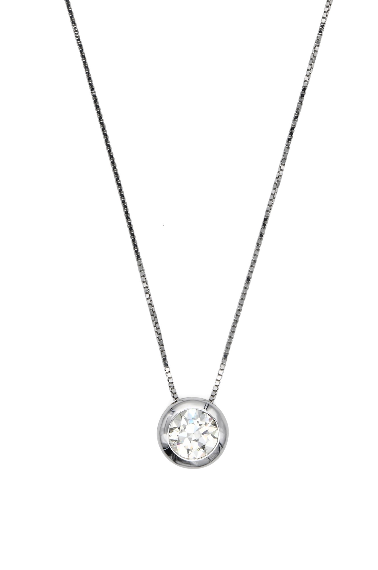 Pendente in oro e brillante solitario Oro bianco 750/000. Diamante in taglio rotondo brillante ct. 1,83, M, VS2. Corredato di certificazione gemmologica IGI. Peso complessivo gr. 4,30. Lunghezza cm 43