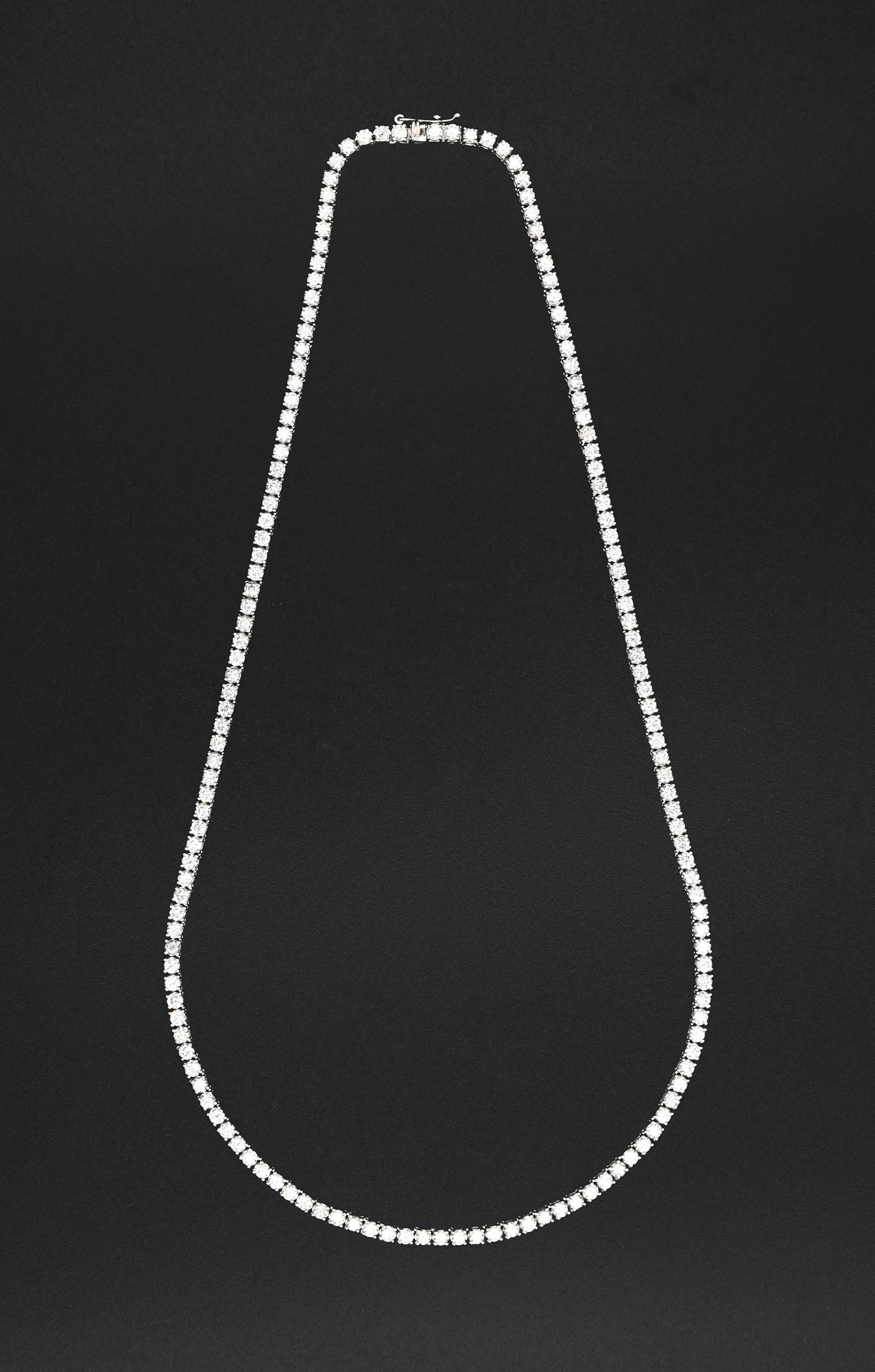 Girocollo eternelle in oro e brillanti Oro bianco 750/000. Diamanti in taglio rotondo brillante ct. 9,15, F, VS. Peso complessivo gr. 20,30. Corredato di certificazione gemmologica. Lunghezza cm 43
