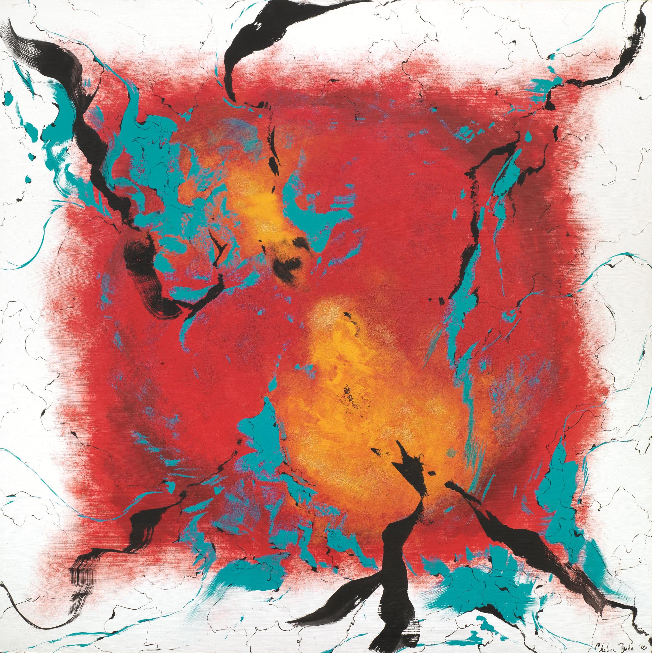 Chelsea Owens (Washington 1978) OZONE acrilico su tavola, cm 100x100 firmato...