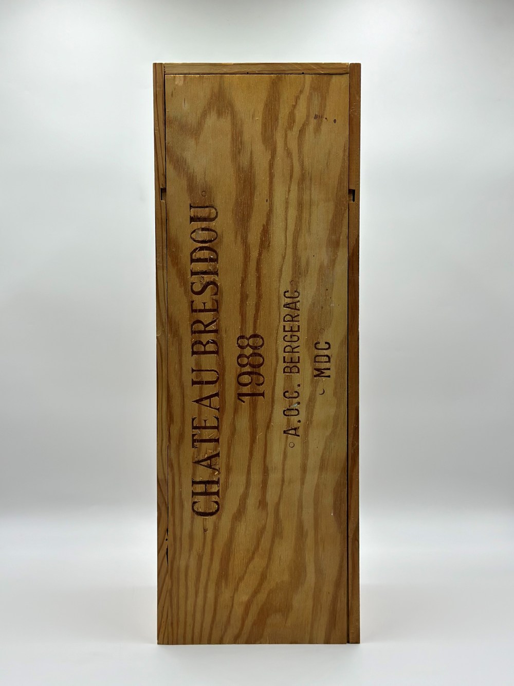 Francia-Bordeaux 6 Francia, Château Bresidou Bergerac - 1 Mathusalem (Mt), annata 1988. Livello: entro il collo (WN). Confezione: scatola di legno originale (OWC). Condition report: etichetta in buone condizioni e capsula in ceralacca rovinata dal tempo.