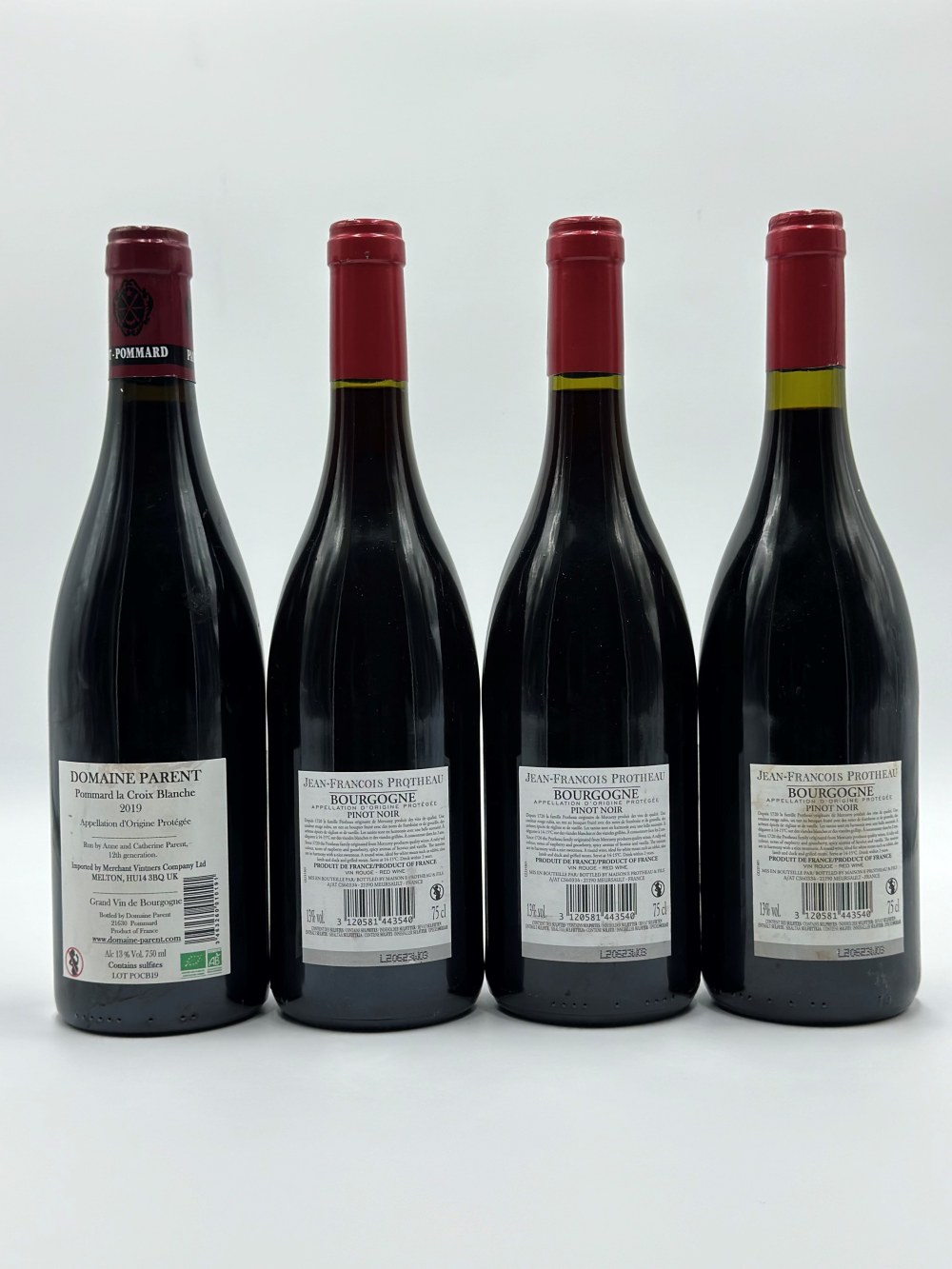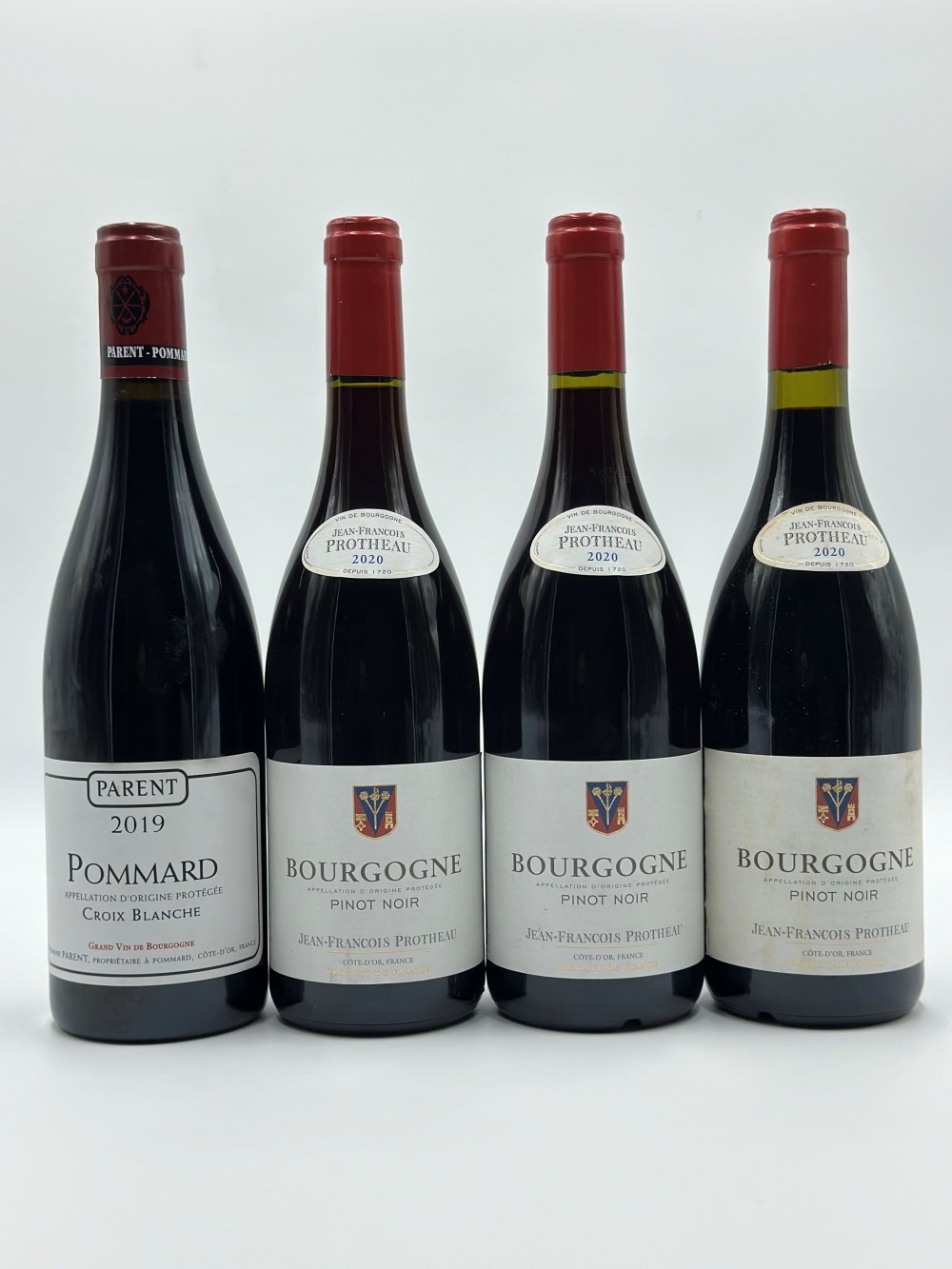 Francia-Bourgogne 0,75 Selezione Francia Borgogna - 4 bottiglie (bt), annate 2019 e 2020. Livello : entro il collo (WN). Condition report : etichetta e capsula in perfette condizioni.