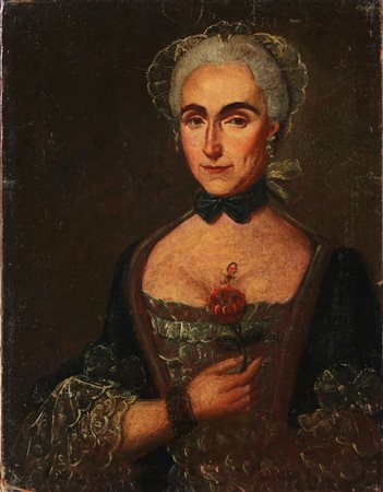 ARTISTA DEL XVIII SECOLO Ritratto di Gentildonna. Olio su tela . Cm 48,50 x 64,00.