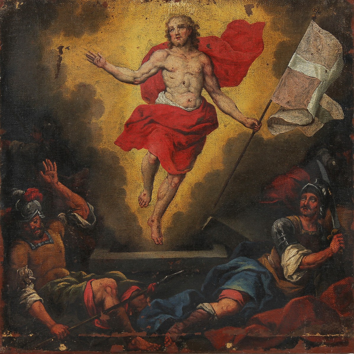 ARTISTA VENETO DEL XVII SECOLO Ascensione. Olio su tela . Cm 39,50 x 39,50.