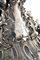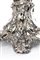 Grande candelabro in argento sterling a sette luci, Londra 1837, argentiere Robert Garrard braccia sagomate ornate da rilievi vegetali, disposte su due palchi di cui quello superiore idealmente sospeso e sorretto da elementi incurvati; fiamma centrale e reggicandele a vaso incluso in una campanula con petali frastagliati; ampia base di impianto trilobato con orlo arricchito da lambrecchini sollevati, abbellita da cartigli applicati in fusione decorati da iscrizione, stemma araldico e iniziali incise con motto latino "Meliore Fide Quam Fortuna" (meglio la Fede che la Fortuna); applicazioni in fusione sulla base in forma di cascatelle fiorite; piedi a valva cm 77x50 - gr. 9100