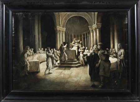 ARTISTA DEL XVIII SECOLO Scena biblica. Olio su tela . Cm 110,00 x 75,00. . Cornice presente