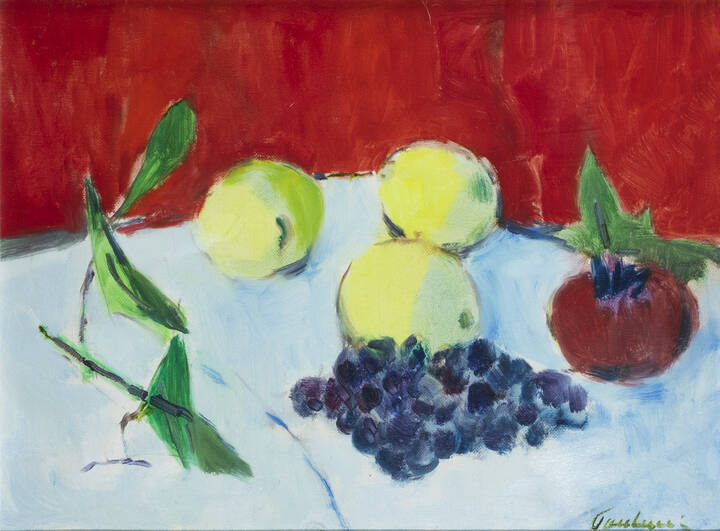 ENRICO PAULUCCI<BR>Genova 1901 - 1999 Torino<BR>"Natura morta su fondo rosso"