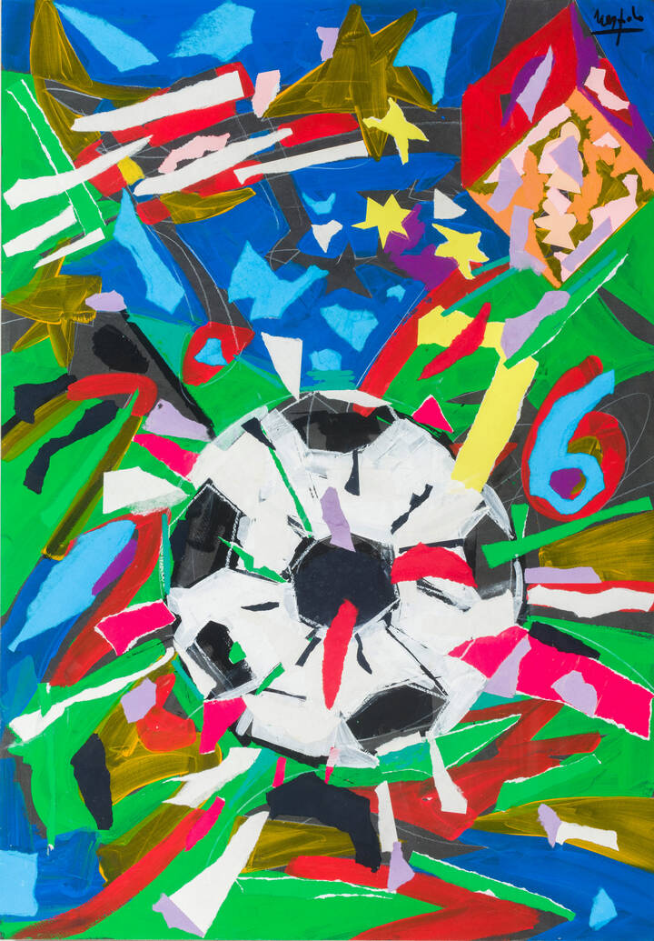 Bibl:-"Torinoarte per il Mondiale 90", catalogo della mostra, 1990, 11 maggio/30 giugno, Torino, Galleria Nuova Gissi, 11 maggio/30 giugno 1990, ripr. a colori a p.n.n.