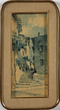 ANONIMO Paesaggio urbano. Incisione. Cm 11,00 x 24,00. Firmato. Cornice presente