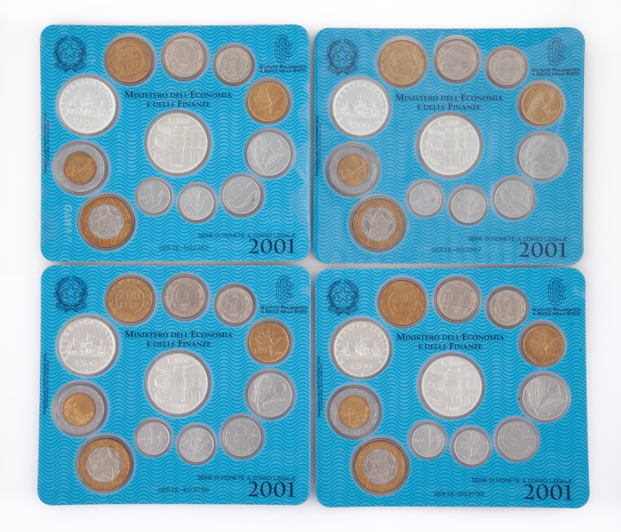 4 Serie Divisionale in Lire 2001 Repubblica Italiana Entro confezioni e folder originali