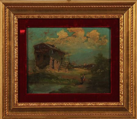 ANONIMO Paesaggio. Pastello su cartone. Cm 30,00 x 23,00. A firma di Giuseppe Rossi. Cornice presente