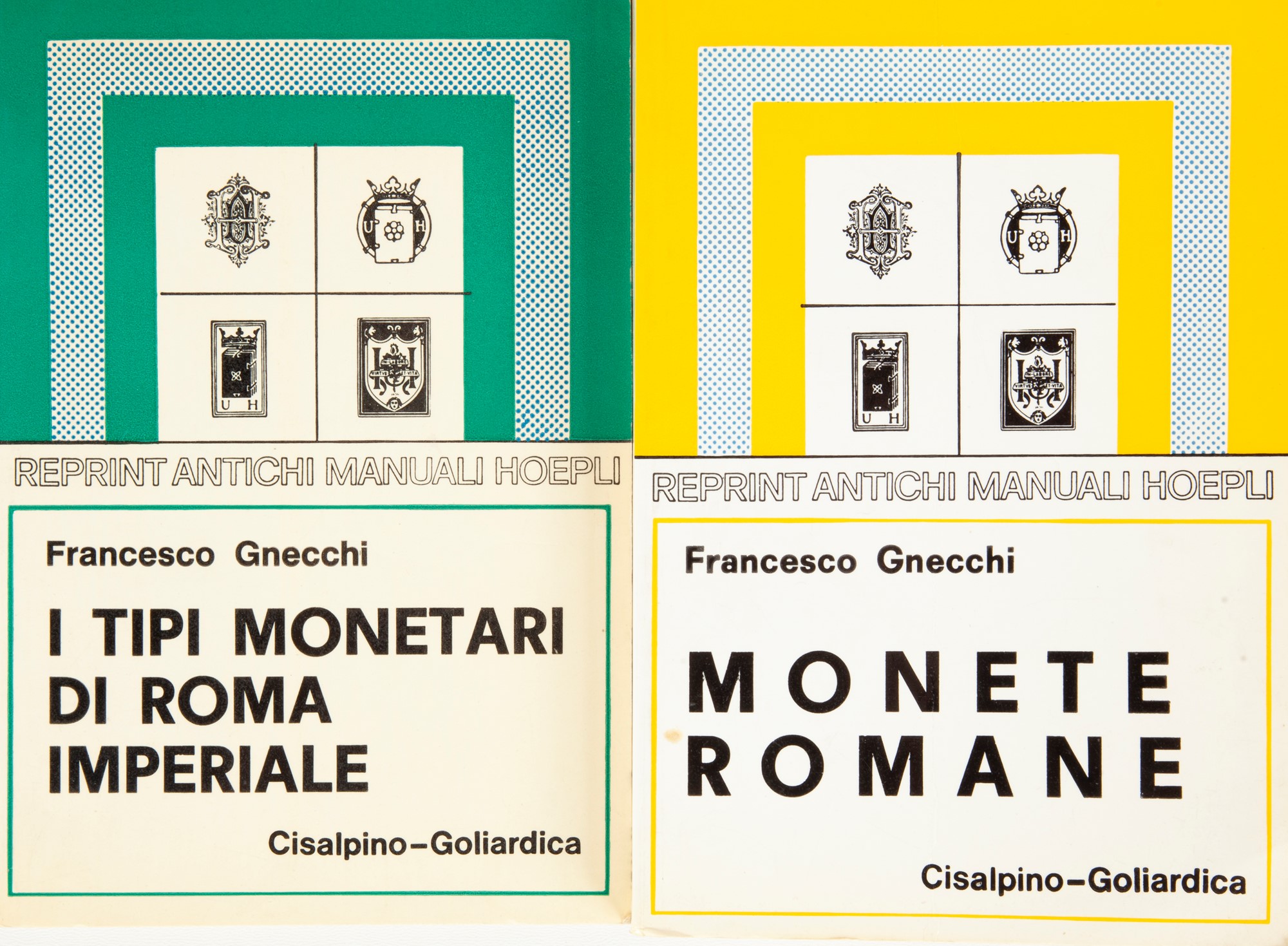 Francesco Gnecchi 2 volumi- Monete Romane - I tipi monetari di Roma Imperiale Ristampe anastatiche delle edizioni Hoepli del 1935 e 1907. Cisalpino Goliardica 1977-8 cm 15,5x10,5