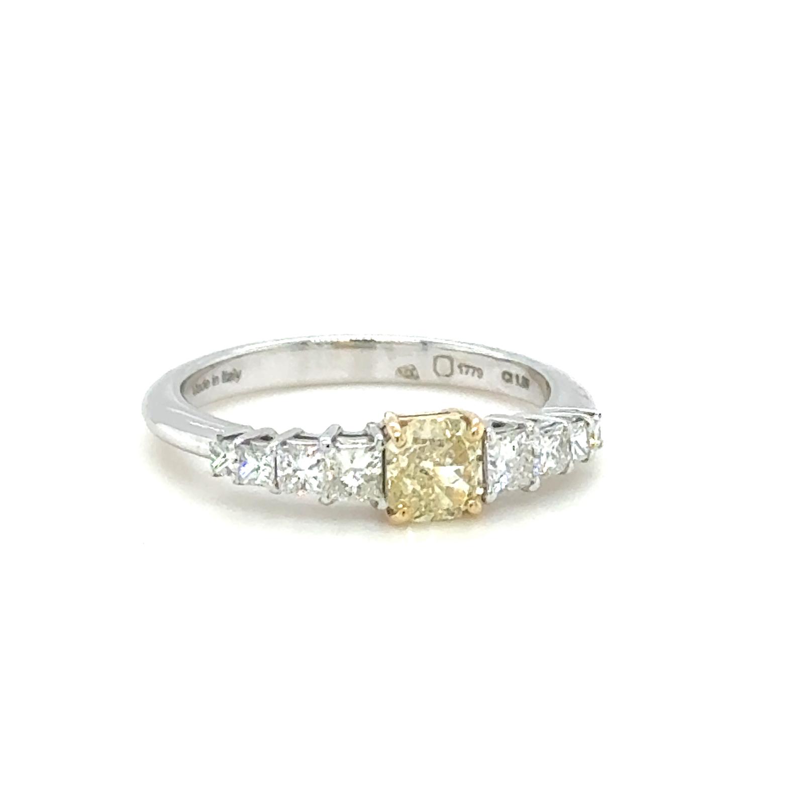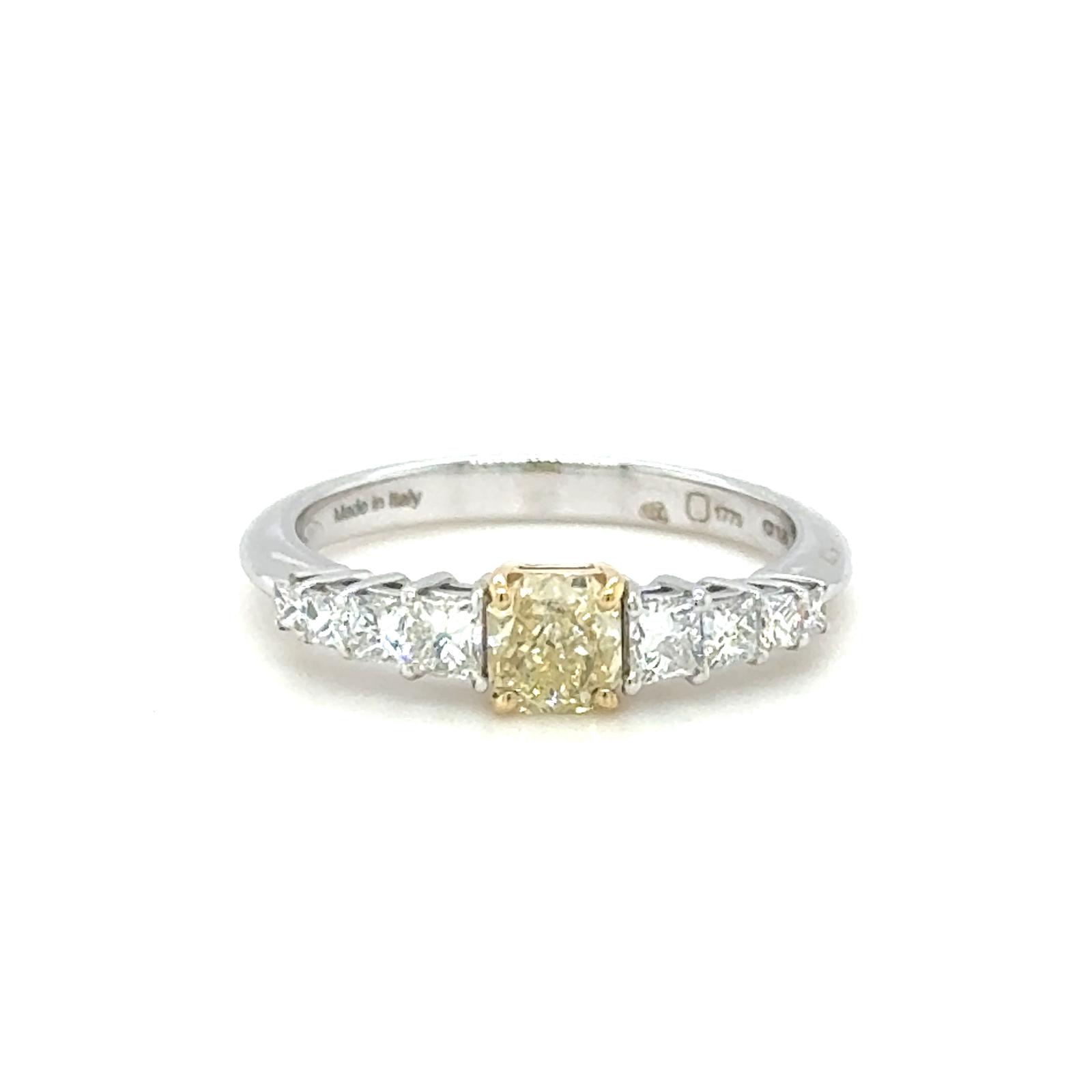 ANELLO IN ORO BIANCO 18K 3.24 GR CON DIAMANTE CENTRALE TAGLIO PRINCESS DA 0.40 CARATI COLORE FANCY GIALLO -SI3 + BRILLANTI LATERALI PER 0.60 CARATI COLORE D-F PUREZZA VS2 TAGLIA - 7 CERTIFICATO GEMMOLOGICO MAROZ DIAMONDS LTD MEMBRO ISRAEL DIAMOND EXCHANGE - JG4041779
