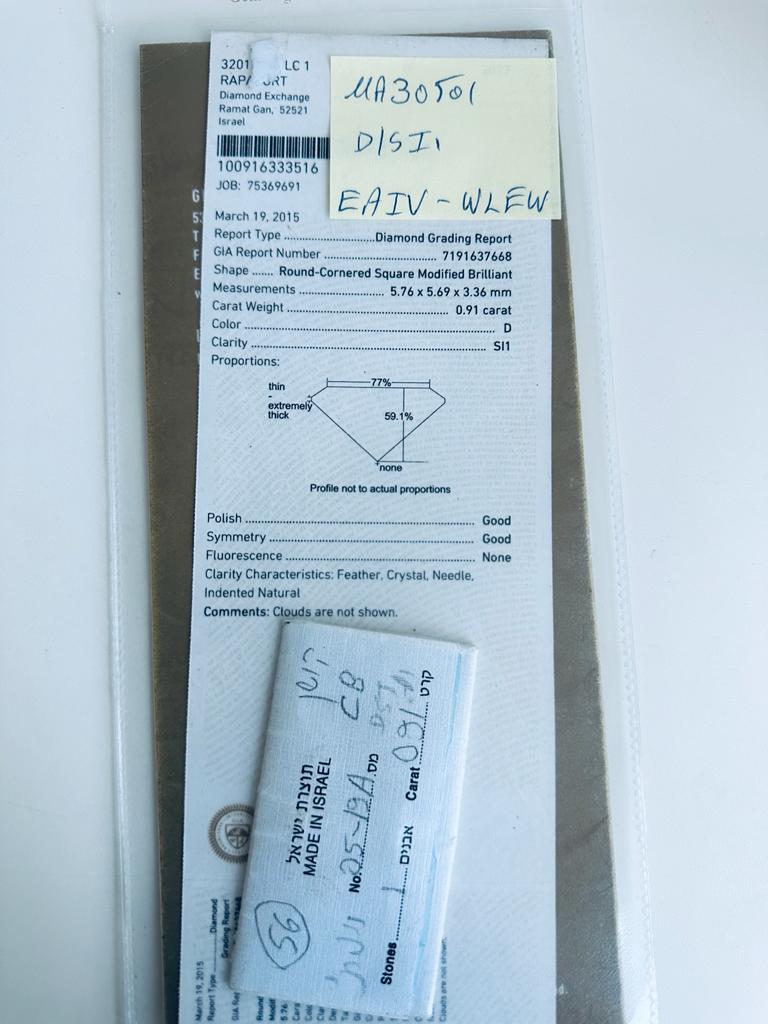 DIAMANTE 0,91 CT D - SI1 - GIA - MA30501