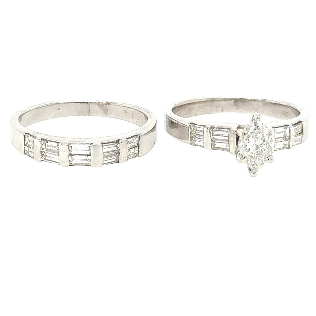 ANELLO IN ORO BIANCO 14K 5.39 GR CON DIAMANTI PER 0.72 CT COLOR G-H PUREZZA SI1 TAGLIO MARCHESE 0.42 CARATI COLORE F PUREZZA SI2 TAGLIA 5,6 CERTIFICATO AIG - RNG30517