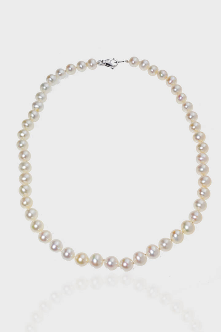 composto da un filo di perle di acqua dolce del diam di mm 9,5 ca. Chiusura in argento 925/1000.