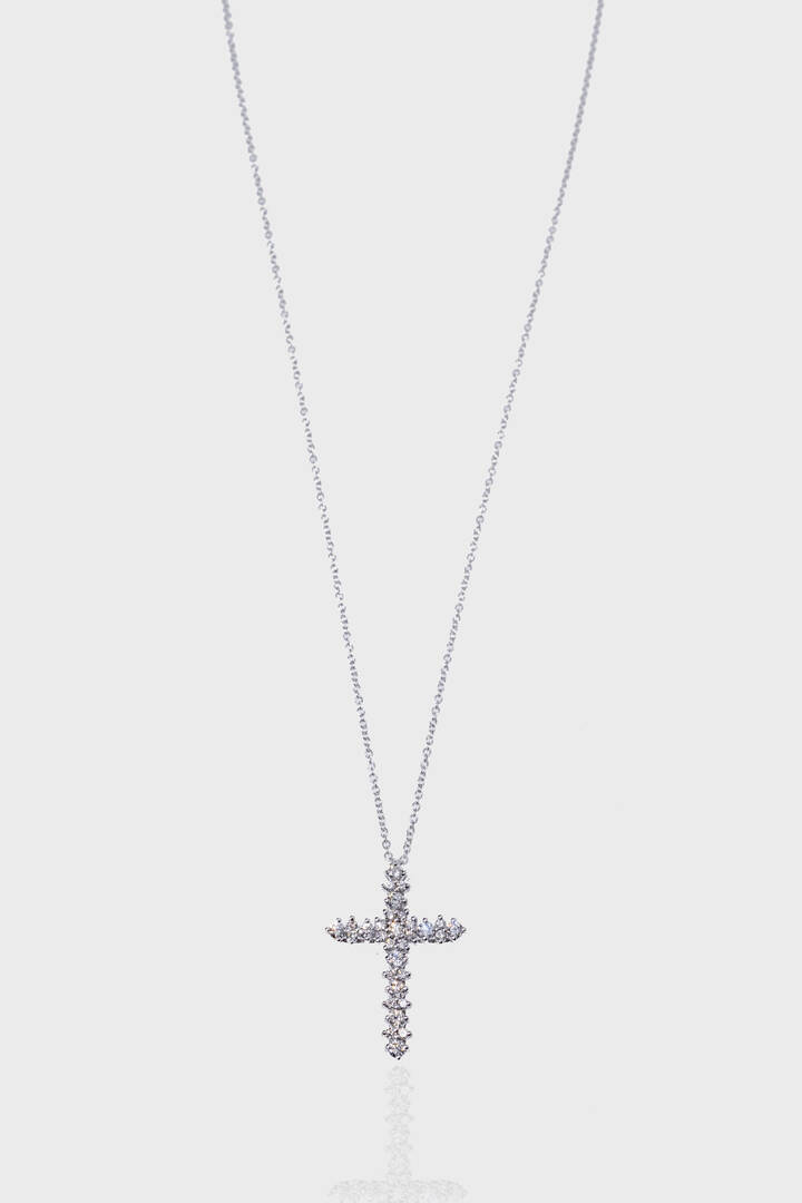 in oro bianco a forma di croce con diamanti taglio brillante per totali ct 0,50 ca, probabile colore G-H, purezza IF-VVS