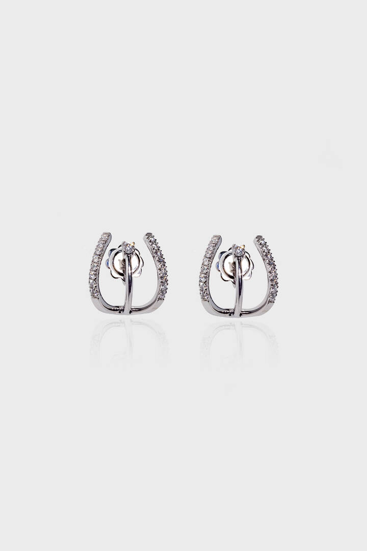 in oro bianco, a forma di fibbia, in diamanti taglio brillante per totali ct 0,34 ca, probabile colore G-H, purezza IF-VVS