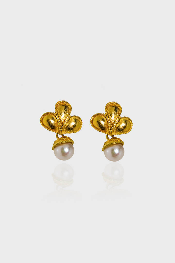 in oro giallo, con trifogli stilizzati ai lobi e due perle giapponesi del diam. di mm 7 ca.