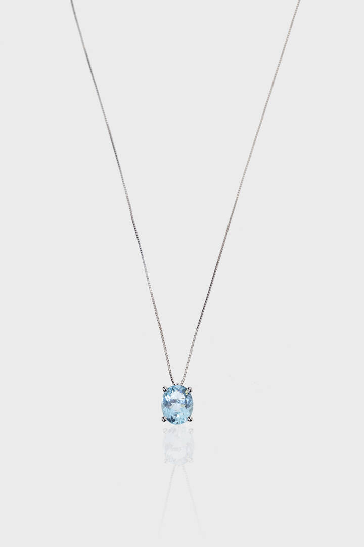 in oro bianco con acquamarina taglio ovale di ct 2,19