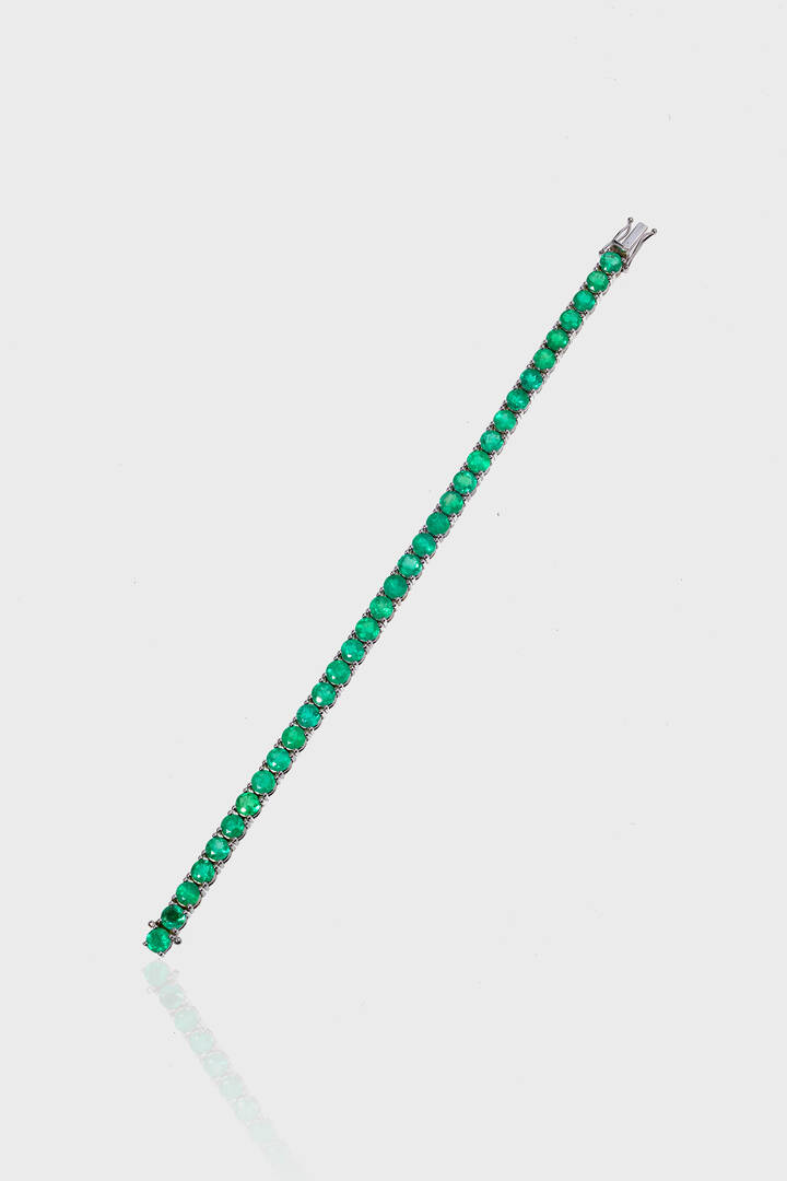 in oro bianco, modello tennis, con smeraldi colombiani, minor oil, per totali ct 11,52.