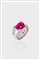 in oro bianco con al centro rubino cabochon di ct 6,50 ca e diamanti taglio brillante e carré per totali ct 3,0 ca, probabile colore F-G, purezza IF-VVS