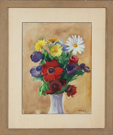 PELLEGRINI GUGLIELMO (1901 - 1963) Natura morta di fiori. Acquerello . Cm 27,50 x 36,50. Firmato in basso a destra. Cornice presente