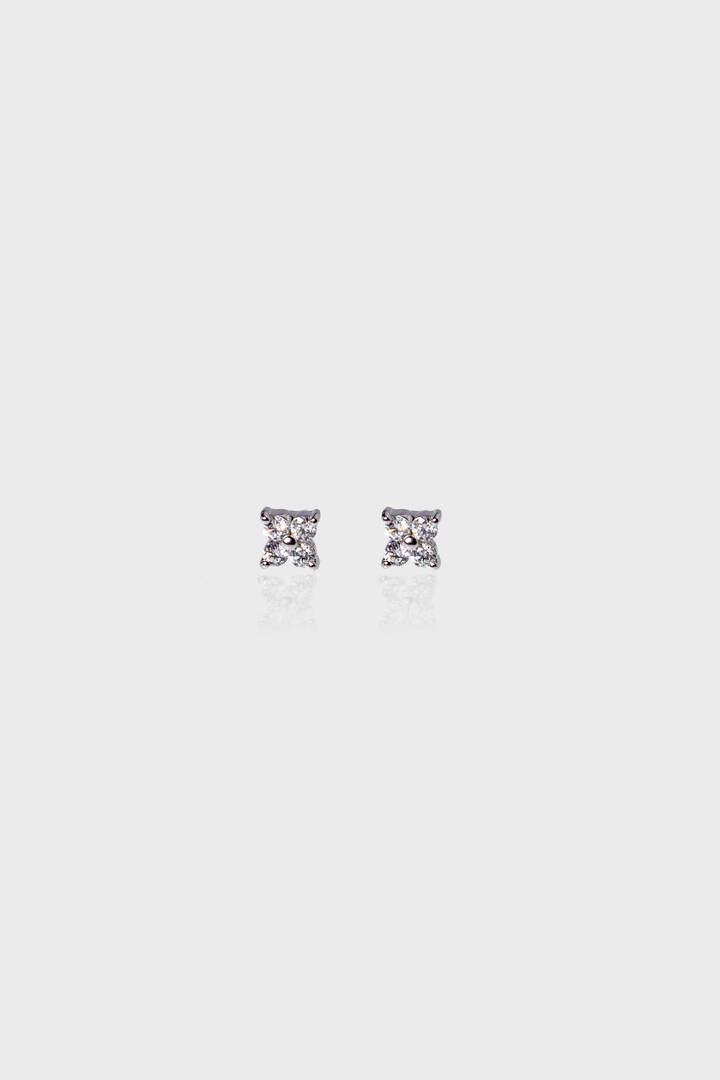 in oro bianco, a lobo, con fiori in diamanti taglio brillante per totali ct 0,10 ca, probabile colore G-H, purezza IF-VVS