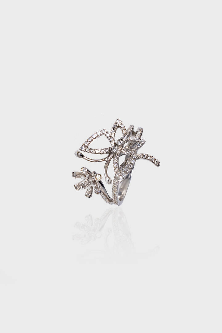 in oro bianco, sommità con farfalla stilizzata in diamanti taglio brillante per totali ct 0,50 ca.