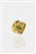 in oro giallo, composto da tre fasce, con diamanti taglio brillante per totali ct 1,0 ca, un rubino taglio ovale e uno smeraldo taglio ovale per totali ct 1,40 ca