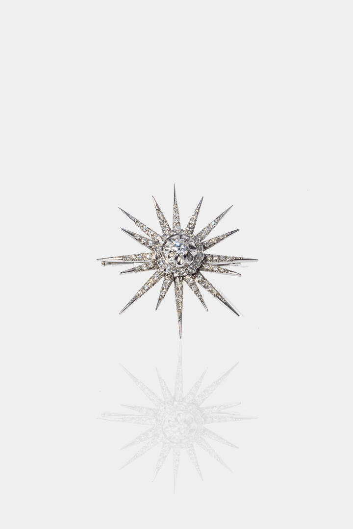 in oro bianco, anni '50, a stella a sedici punte, con diamanti taglio 8/8 e brillante per totali ct 0,80 ca