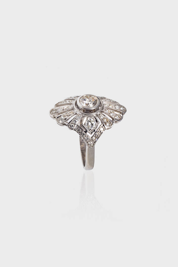 in oro bianco, sommità a losanga, con diamanti taglio brillante per totali ct 1,30 ca.