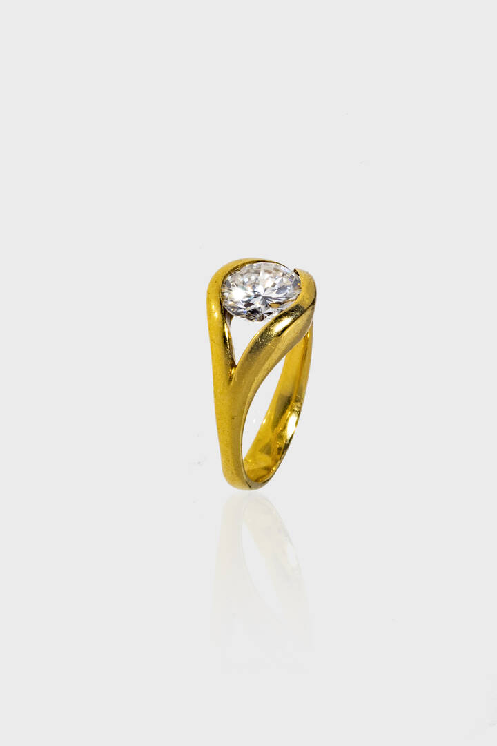 in oro giallo con diamante taglio brillante di ct 1,10 ca, probabile colore I, purezza VVS